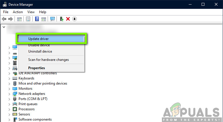 - Now, right-click on the driver and click Update driver. Now you will be given two options; either to update automatically or manually where you select the driver file. We will cover both.