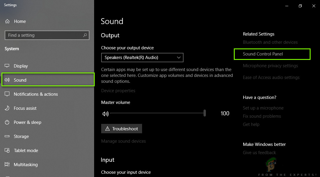 Sound settings – Windows - Once in sound settings, click on Sound Control Panel present at the top-right side of the screen.