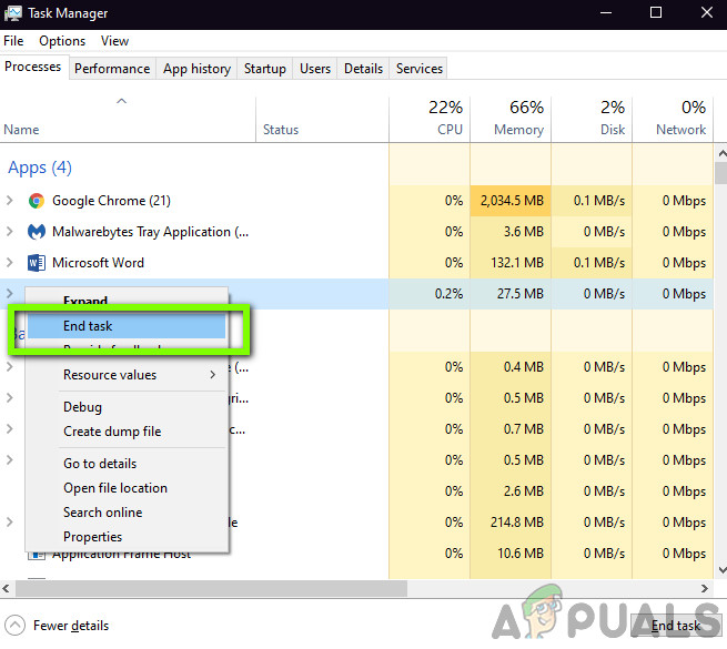 Here, we will navigate to the task manager and you should also check whether any third-party applications are running in the background. These applications might not be visible directly in the task manager hence you should check your Desktop tray. If you find any such application, right-click on it and select Exit. Some applications include Sonic Studio, ‘Nahimic’ etc.