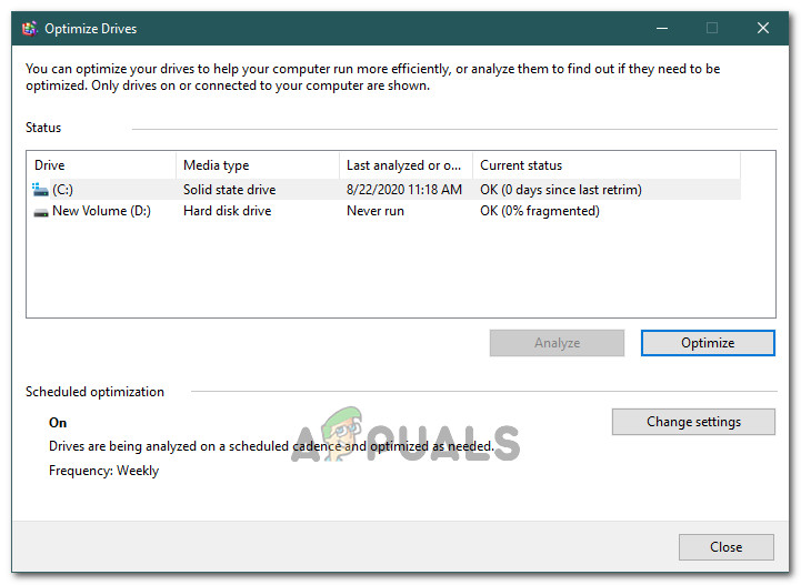 - This should open up a new window. In the new window, select the root drive again and click on the “Optimize” button.