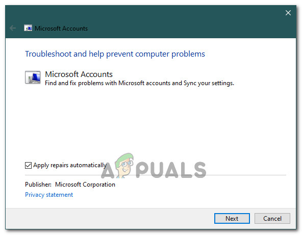 Checking the “Apply Repairs Automatically” box - Click on “Next” to proceed to the next screen and let the troubleshooter run on the computer.