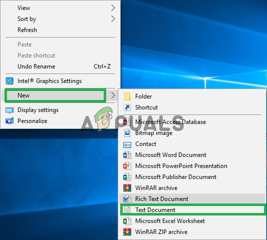 Right-Clicking on the desktop and selecting “Create New Text Document” option - Open this text document and paste the following lines inside of the text document.