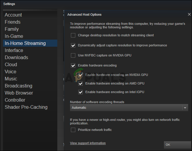- Go to the In-Home Streaming tab, uncheck Use NVFBC capture on NVIDIA GPU under Advanced Host Options, then click the Steam menu again and select Exit to close Steam.