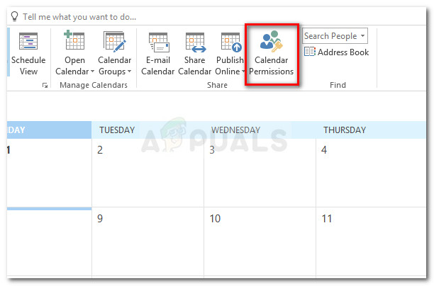 Some affected users reported that they managed to find a workaround in using the Calendar Permission button to grant permissions directly. But keep in mind that this solution is merely a workaround and will not fix the functionality of the Share Calendar button.