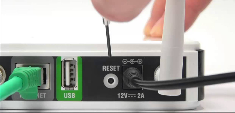 - Find the reset button on the back of your router and press it for about 6 seconds until the router turns off and back on, indicating a reset.