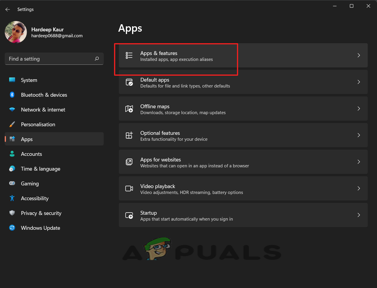 - On the Settings window, head to the Apps section and click on Apps and features on the right panel.