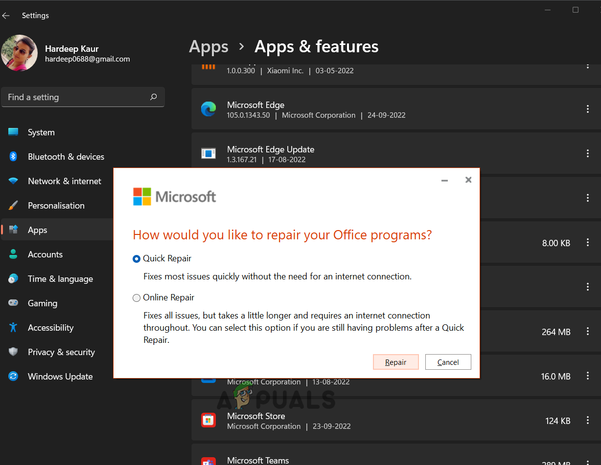 Sometimes the problem is related to the Microsoft Office suite corruption, so if none of the above-listed solutions works for you. We suggest you repair the Microsoft Office Suite to get past the issue. Follow the steps below to repair the Microsoft Office Suite: