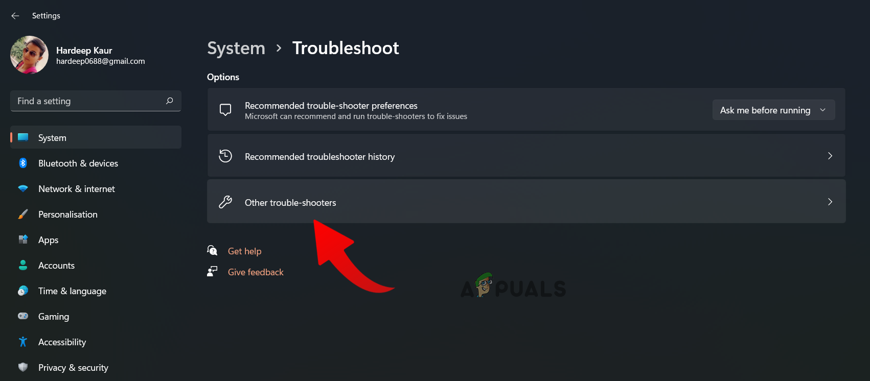 Click on Troubleshoot - Next, select the option, Other troubleshooters.