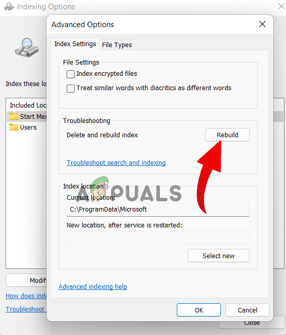 You can try to get past this issue is by manually rebuilding the search indexing in Windows 11. This solution has worked for many users, so it is worth trying. You just need to follow the below simple steps to do so: