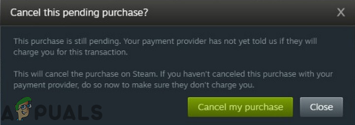 View Purchase History in Steam - Select the pending transaction and choose “Cancel This Transaction,” then confirm with “Cancel My Purchase.”