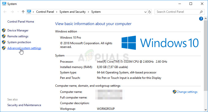 - Click on the “Advanced system settings” button at the right of the window and navigate to the Advanced Under the Performance section, click on Settings and navigate to the Advanced tab of this window.