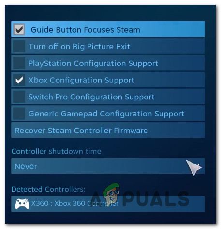 - Uncheck all irrelevant boxes. Keep Xbox Configuration Support and Guide Button Focuses Steam checked if using an Xbox controller.