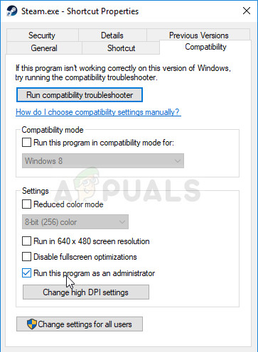 - Make sure you confirm any dialogs which may appear for you to confirm with admin privileges and Steam should launch with admin privileges from now on. Open Steam by double-clicking its icon and try relaunching the game to see if the error still appears.