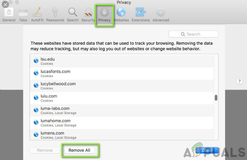 Also, there can be an error in the ending address which you are typing. For example, the ending could be ‘appuals.com’ whereas you might be typing ‘appuals.co.edu’. Make sure that you know the correct URL of the website which you are trying to open. You can also try opening the URL in another website and another browser just to make sure. If it is opening on another browser but not on yours, it probably means there an issue with Safari and you can move on to the next solutions.