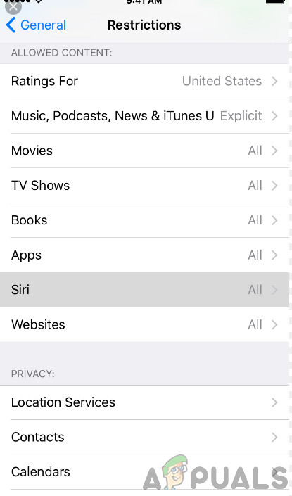 Apple devices have a setting from where you can restrict some flagged content from being opened on your website. This option was introduced to safeguard children against questionable content on the web. However, unknowingly, restrictions might be active and you might be experiencing the error message because your device itself isn’t allowing the connection. In this solution, we will navigate to the settings and change the restriction settings.