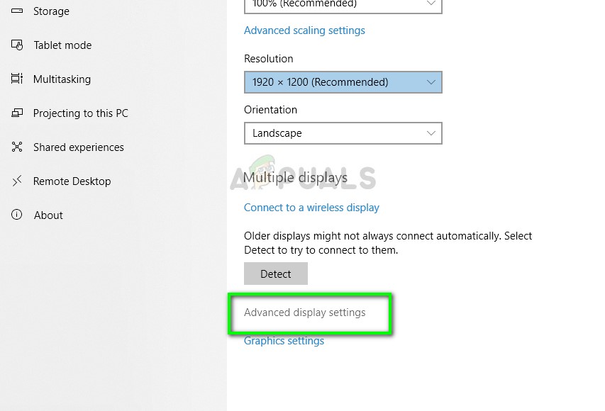 - In Settings, scroll down and select ‘Advanced display settings‘.