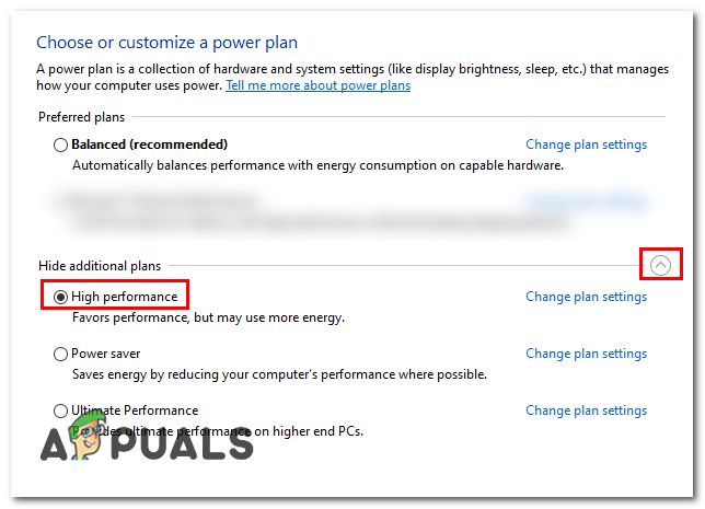 - Click “Show Additional Plans” and then choose “High Performance”.
