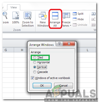 Clicking on View and selecting the “Arrange All” option - Click on “Tiled” and select “OK” to save your changes.