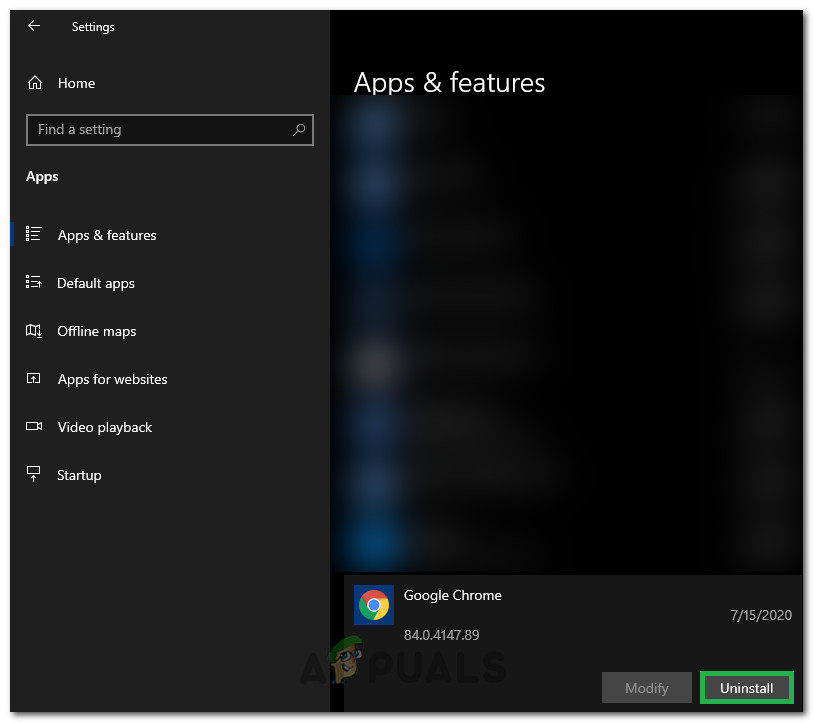 - Under “Apps & features”, find and click Google Chrome.