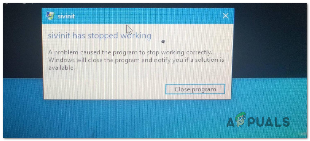 Several Windows users have been reaching us with questions after being unable to get rid of the error message “Sivinit has stopped working“. Most affected Windows users are reporting that they see this error message at every system startup as they’re unable to identify the application that’s causing it. As it turns out, the issue isn’t restricted to a certain Windows version since it’s confirmed to occur on Windows 7, Windows 8.1 and Windows 10.