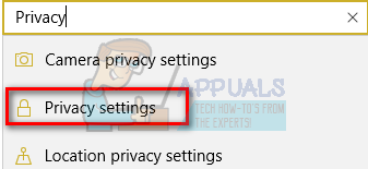 - Once in the settings, type Privacy on the search bar present at the near top of the screen. Now select “Privacy settings” from the list of options available.