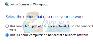 There is an option in the control panel where you can change the system properties and select the option which confirms that this computer isn’t a work computer. Although this might not work for all the users, it did for some so it is worth a shot.