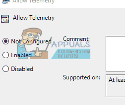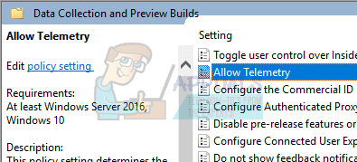 - Now at the right side of the screen, find the item named “Allow Telemetry”. Double click it so we can edit the policy.