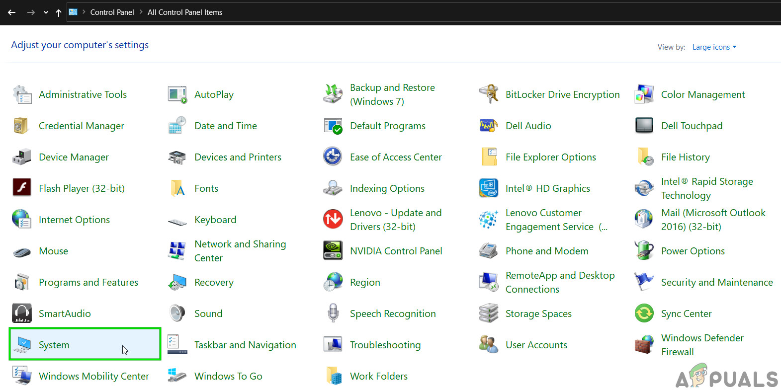 - From the new view of the control panel, select System from the list of options available.