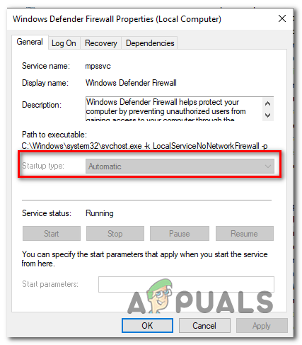 Several affected users have managed to get the issue resolved by accessing the Services screen and changing the status of the Windows Firewall service to Automatic. After doing this and restarting their computer, most affected users have reported that the issue was resolved.