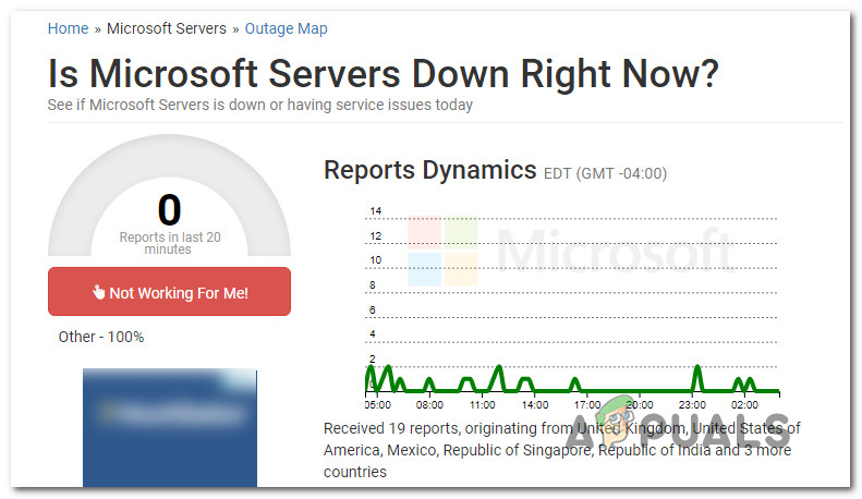 - Microsoft Server issue – As it turns out, this particular problem can also occur due to a server issue caused by a scheduled maintenance period or an unexpected maintenance period. If that’s the case, the issue is obviously beyond your control. The best you can do in this case is to confirm that the servers are causing the problem and want for the issue to be fixed.