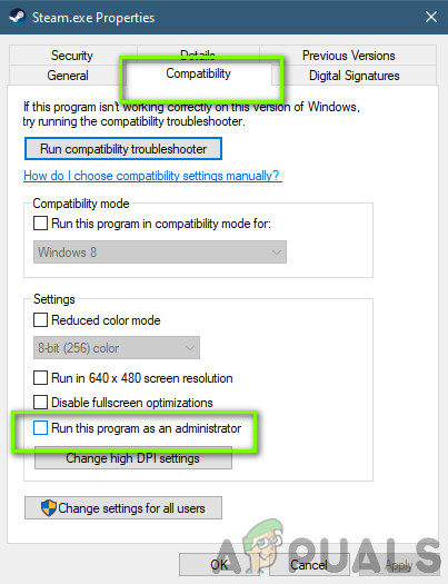 - Once in the properties, select the Compatibility tab and check the option Run this program as an administrator.