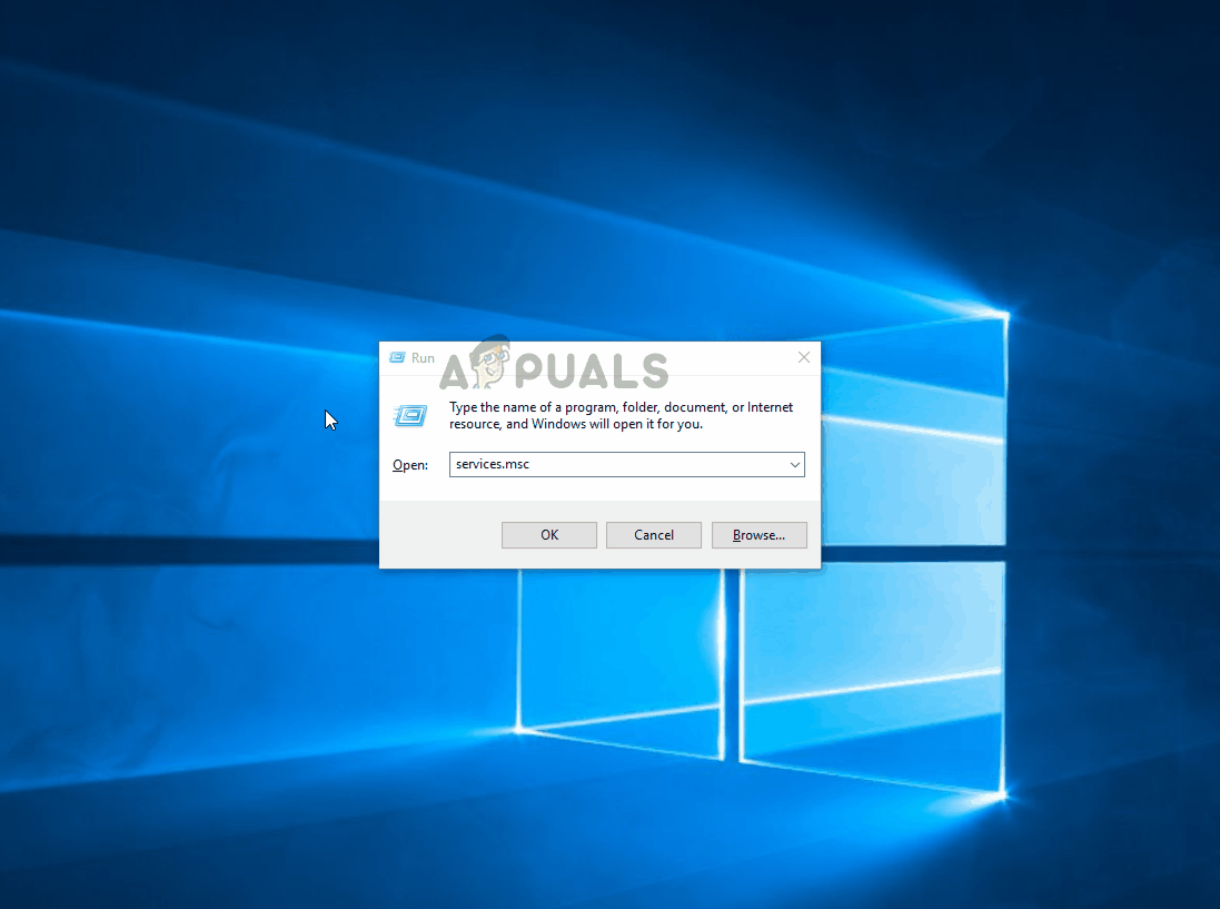 - Press Windows key + R to open up a Run dialog box. Then, type “services.msc” inside the text box and press Enter to open up the Services screen.