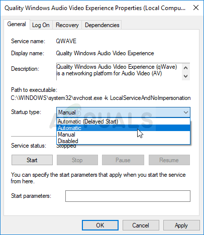 If qWAVE (Quality Windows Audio Video Experience) is not running, it might cause errors, including the “JavaScript Error Occurred in the Main Process”. Setting it to start automatically ensures necessary dependencies for Discord are always available.