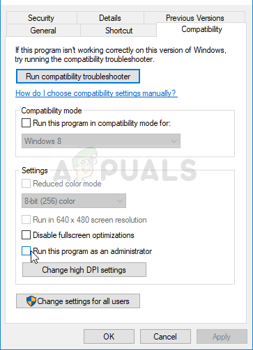 Unchecking the Run this program as an administrator checkbox - Accept any dialogs that appear to save your changes. Now, try launching Discord to check if the error reoccurs.