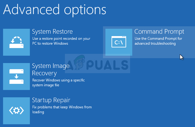 - Instead or restarting, a blue screen will appear with several options. Choose Troubleshoot >> Advanced Options >> Command Prompt.