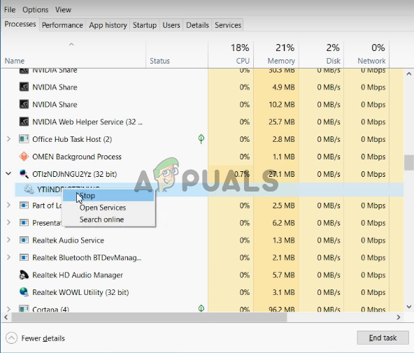 - Select it and click End task in the lower right corner.
