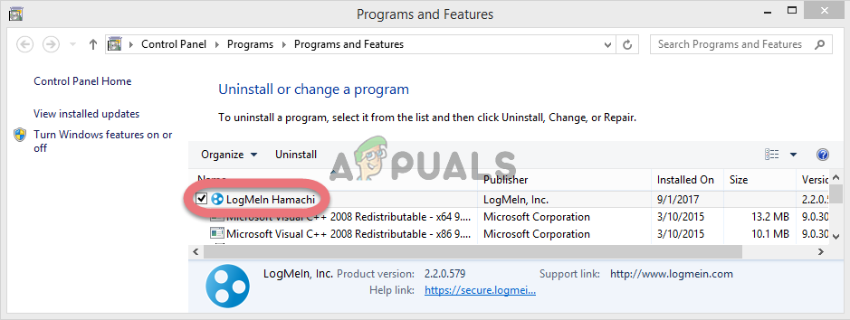 - Find the LogMeIn Hamachi tool in Control Panel or Settings and click Uninstall. Follow the instructions in the uninstall wizard to remove it.