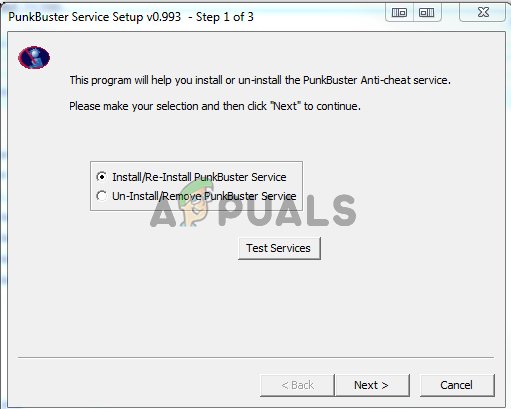 - Keep the Install/Re-Install PunkBuster Service radio button checked before clicking Next. Wait for it to reinstall the service!