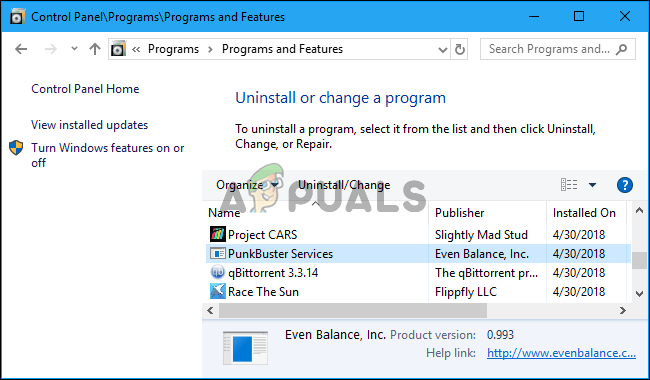 - Locate the PunkBuster Services entry in the list of installed programs, left-click it once, and click the Uninstall button at the menu above. You can also right-click it and choose Uninstall from the context menu which will appear.