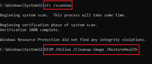 - After DISM completes, run:
