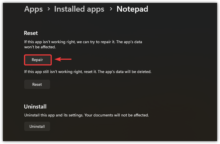 - If available, select Repair.