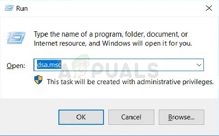 - Press Windows Key + R to open the Run dialog box. Type ‘dsa.msc‘ and click OK to open the Active Directory Users and Computers Microsoft Management Console.