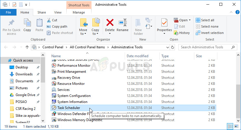 - After the Control Panel window opens, change the “View by” option at the top right part of the window to “Large Icons” and scroll down until you locate the Administrative Tools entry. Click on it and locate the Task Scheduler shortcut. Click on it to open it as well.