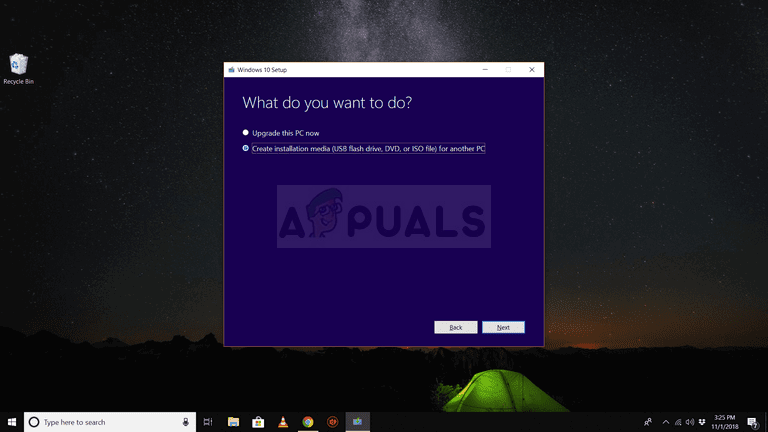 - Click Next and the Media Creation Tool will proceed to download the files necessary to install create the installation device. Wait for the process to finish.