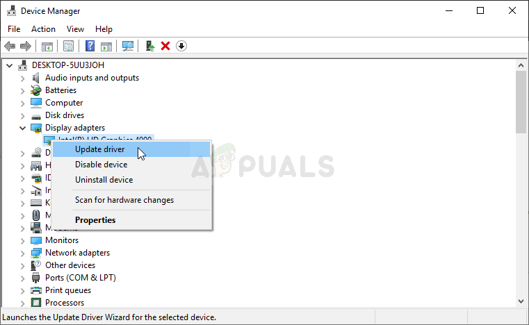 - Expand one of the categories to find the name of the device you want to update, then right-click on it, and select Update Driver. For graphics cards, expand the Display adapters category, right-click your graphics card and select Update Driver. Graphics cards are the most common culprit.