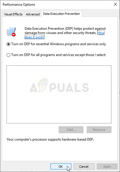 If your motherboard is capable of using DEP, you should try enabling it as many users claim that this was able to resolve the problem almost instantly on their computer. DEP is a set of technologies that perform additional memory checks to prevent malicious software from running on your computer. Enabling it definitely won’t do any harm so make sure you follow the steps below!