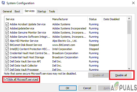 Access System Configuration settings. - Check Hide all Microsoft services and hit Disable All. This is important as you don’t want to disable the essential services and restart your computer.