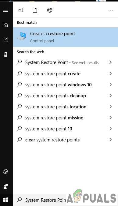 - Open your system restore menu by typing System Restore Point in your search bar.