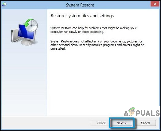 System Restore menu. - When you click Next, it will give you a list of Restore Points, select the one which is prior to the update.