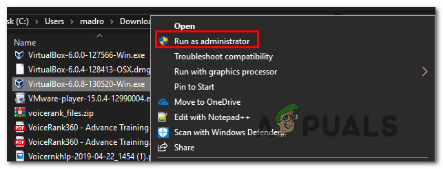 - Insufficient permissions – Even if VirtualBox is installed with administrative access, it might still need admin privileges in order to start some services that are needed for VM operations. Several affected users have managed to resolve the issue by configuring the VirtualBox shortcut to run with administrative privileges.